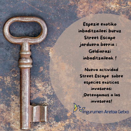 Se trata de un juego de aventura para mayores de 8 años. Las personas participantes deberán de ir resolviendo distintos enigmas y rompecabezas para conseguir ayudar a Arkaitz, un biólogo muy despistado que ha confundido una especie invasora con una autóctona. Por medio de esta actividad se conocerá mejor la problemática que generan las especies exóticas invasoras, dándose a conocer algunas de las especies de nuestro entorno. A diferencia de un Escape Room tradicional, las pruebas, pistas, objetos y enigmas a superar ya no están en una sola habitación sino en un espacio abierto, por lo que tendrás que moverte por distintos espacios del Aula Ambiental, hasta descubrir los nombres de las 4 enigmáticas especies exóticas invasoras, y poder así liberar al animal autóctono que ha caído en la trampa del biólogo. ¿Podréis hacerlo en menos de una hora? Se harán 3 turnos: 10:15, 11:15 y 12:15. Es necesaria la inscripción previa y recibir confirmación por parte del Aula Ambiental.